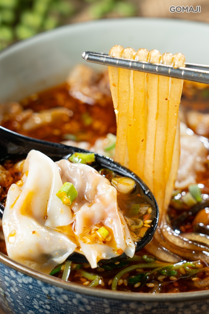 一顆顆自製餛飩,搭配招牌酸辣粉,噴香獻上!一摺摺餛飩皮將肉餡精華包緊緊,入鍋烹煮,掌握黃金秒數,讓餛飩皮保有彈性,與酸辣開胃又到味的獨門湯底、粉絲相襯,創意組合,完美無比,咕溜又涮嘴,成功征服您我的心。