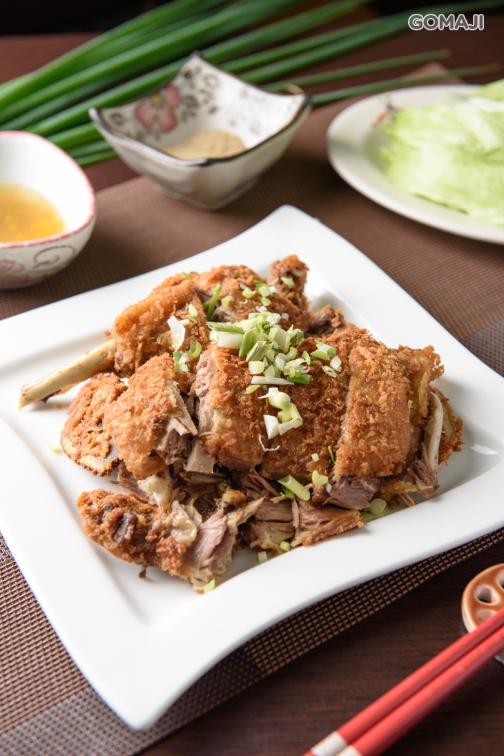 此道繁瑣工法完成的香酥鴨料理,菜色外觀金黃偏暗,口感皮酥肉嫩,可自行搭配以萵苣、蔥白、泡菜、應季水果醬佐食,口感不乾澀且多汁。皇族香酥鴨菜色著重工藝造型,講究近10餘種純中藥醃漬酥炸後,與生鴨呼應且融合,形態完整、色調柔和、口感皮脆肉酥,酥軟爽口,酥而不油集鮮香於一體,往往用餐時間一推出,深受大朋友、小朋友歡迎!