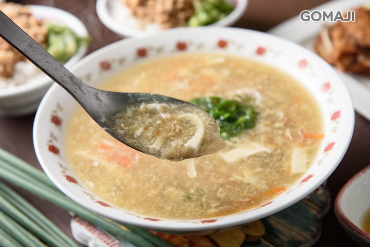 皇族香酥鴨自創風味菜品改良源於一道創制于南宋淳熙年间,是浙江省杭州市傳統魚羹名菜。皇族霜魚羹特將鰱魚及鱸魚分別蒸熟後,再入油鍋煎熟分別剔去魚骨再將魚肉加工成絲狀,烹飪時再加上豆腐絲、金針菇、雞蛋花、精熬高湯(魚骨+豬大骨)與其它佐料烹制而成霜魚羹。色澤油亮味鮮、湯汁不過份濃稠沾黏口中、豆腐鮮嫩滑潤、霜魚絲用料豐富軟硬有別。