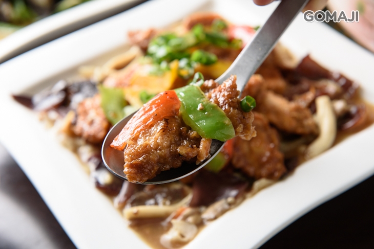 採用熱油鍋爆香蒜末、薑末後炒香胛心肉,炒至肉色變白,再加入獨門調味料與作法,結合高湯及醃花瓜碎拌炒均匀即成。顏色較深、香味有層次味道較重,開胃又下飯!
