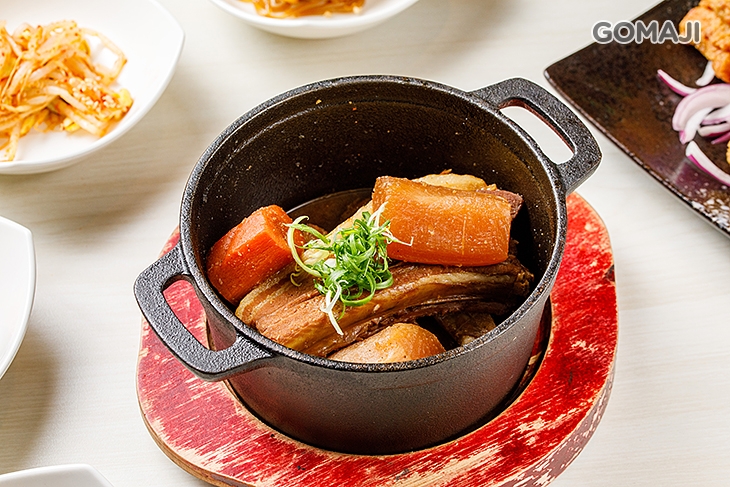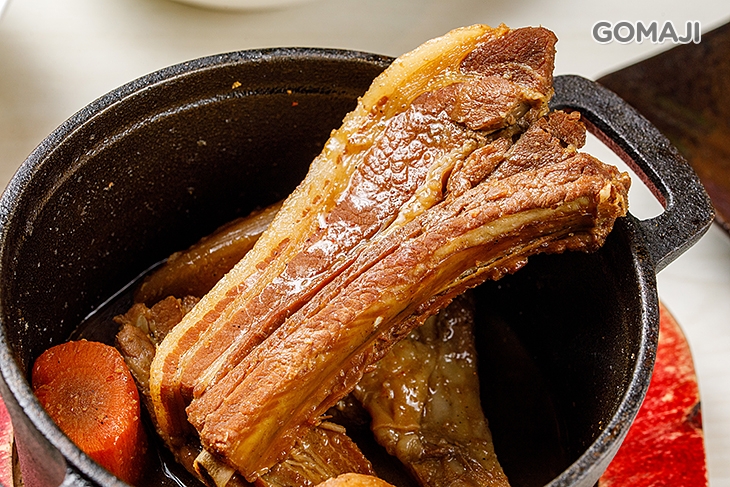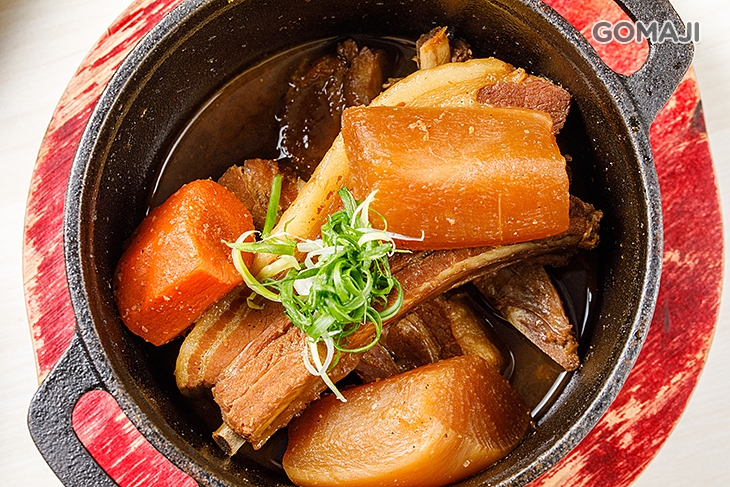 深受大朋友、小朋友歡迎與喜愛的還有這道 - 燉豬肋排,特選新鮮豬,加入依比例調配的鹹香醬汁燉煮烹調,將豬肋排料理得上色又入味!因為紅、白蘿蔔的提味點綴,口感更加鮮甜美味!入口肉質一咬即散的滋味,讓人捨不得從容嚥下嘴!只想好好感受豬肋排因精心製作而釋放的誘人美味!單吃或將精華醬汁拌上白飯搭配品嚐,幸福、完美!