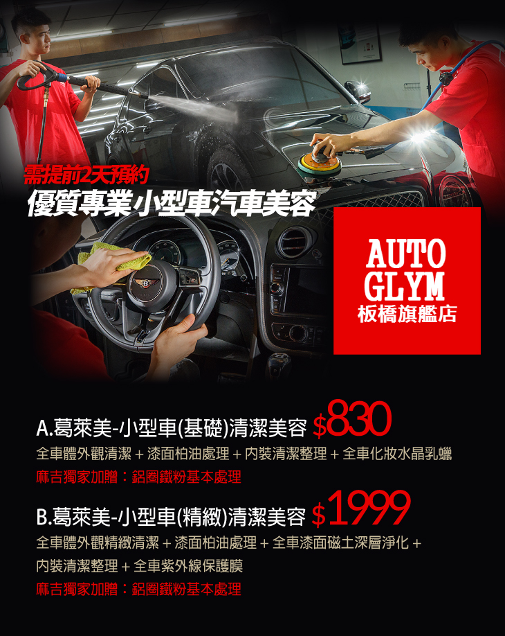 〈含全車體外觀精緻清潔 + 漆面柏油處理 + 全車漆面磁土深層淨化 + 內裝清潔整理 + 全車紫外線保護膜〉麻吉獨家加贈:鋁圈鐵粉基本處理
