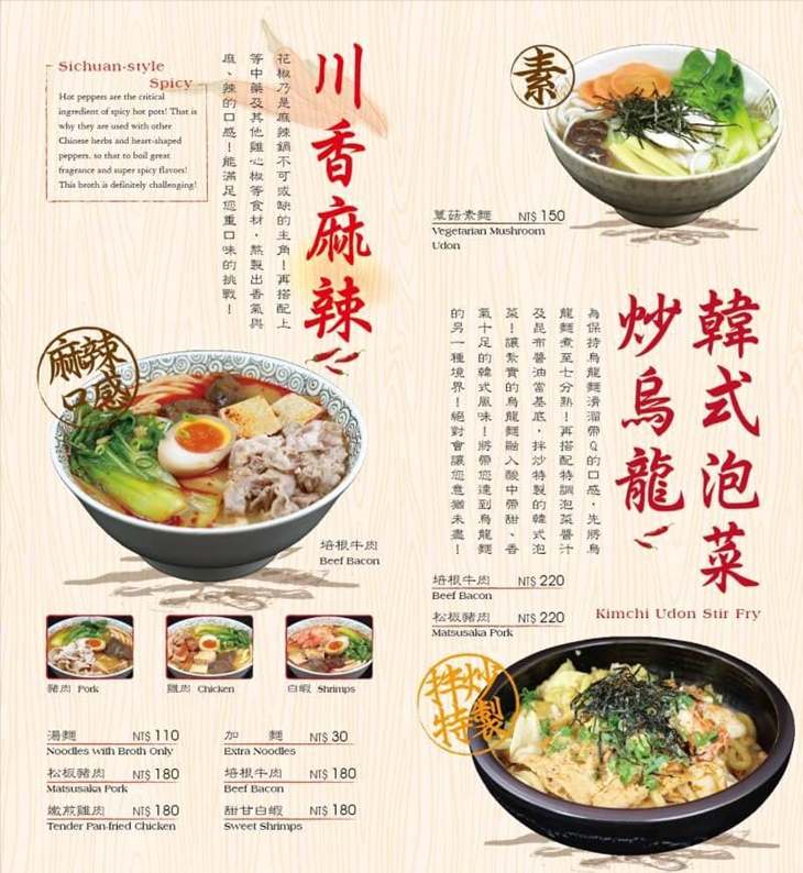既然大聲說是烏龍麵食的專家,就要讓老饕知道到底有多厲害!以獨家完美比例的麵粉揉製麵條,加上天然食材調和,讓烏龍麵條Q彈有勁之外,更多了一股獨特香氣,加上湯頭和主菜,創造出完美的烏龍麵食!