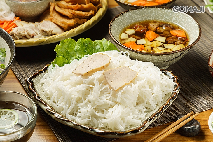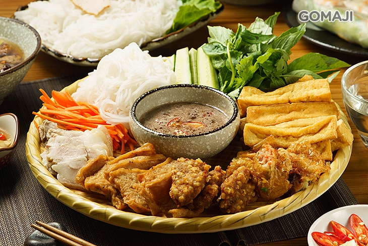 老饕口碑推薦 - 蝦漿豆腐米線,美味上菜囉!特製越式風味調醬,搭配各式精選食材,澎湃獻上,將彈牙米線沾取薄薄醬汁外衣,佐上食材一同入口品嚐,蝦漿豆腐的香氣與精華美味在嘴裡瞬間綻放,魅力無比,榮登本店超人氣首選料理之一。