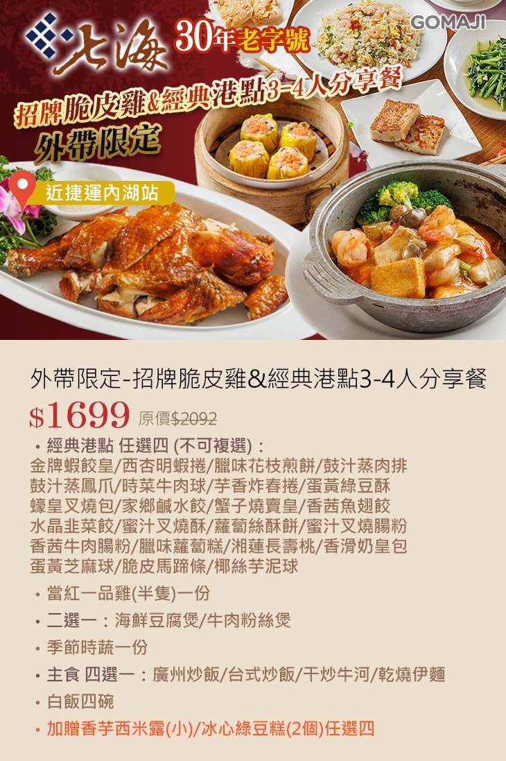 限時搶購-招牌脆皮雞&經典港點3~4人分享餐