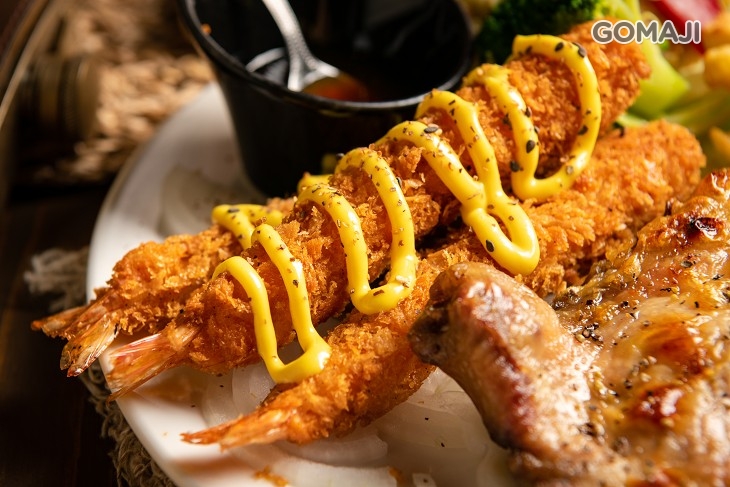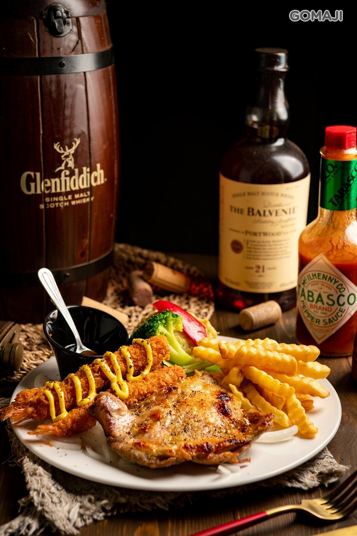 另外,還有海陸A與海陸B特色餐點,可以任麻吉您依喜好、心情選擇,海陸A以香煎雞腿排與酥炸鮮蝦組合為主,皮香肉嫩的雞腿肉,鮮嫩多汁,酥脆金黃的炸鮮蝦,肉質彈牙滋味鮮甜,雙重海陸組合,讓您一次享有兩種味蕾上不同的體驗,如同搭上一艘出海補魚的船隻,回岸後收獲滿滿。