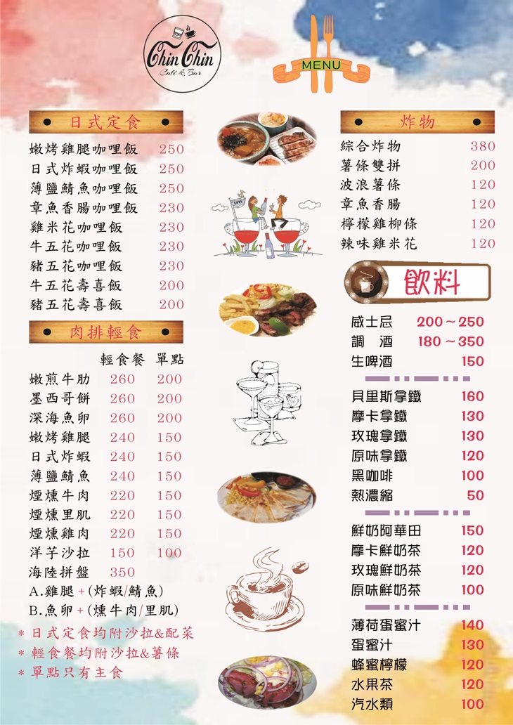 高雄在地人爭相推薦的高CP值餐酒館!位於高雄市新興區尚信街37號上,異國復古風情的裝潢設計,結合各界藝術家定期展出書畫作品,讓人一走進店裡,彷彿時光穿梭般來到另一個空間,享受這裡帶來的一切。餐點提供以輕食排餐、日式定食為主,飲料部分也有啤酒、調酒、咖啡飲品等。食材嚴選新鮮,料理手藝絕佳,是許多人下班、放鬆聚餐、約會的熱門地點,本次與GOMAJI聯合釋出麻吉獨享超值優惠,晚餐、宵夜地點還沒有著落嗎?【Chin Chin Bistro】歡迎您!