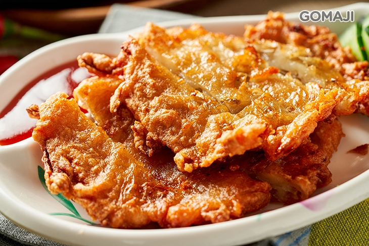 金黃酥脆的現炸牛蒡天婦羅,噴香上桌,沾醬佐醃製小黃瓜入口,脆口清爽的滋味,十分迷人 ~ 來店點份涼麵在配上它,OH MY GOD ~ 未免也太幸福了吧。