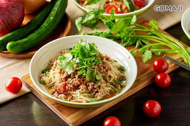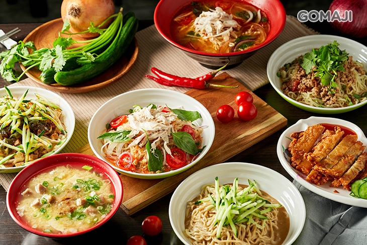 酸甜開胃的泰式雞絲涼麵,美味上菜囉 ~ 以現燙冰鎮涼麵為基底,加入特調泰式醬汁、雞肉、九層塔等食材相組而成,麵條吸附了泰式醬汁的精華美味,大口品嚐,酸酸甜甜,咕溜涮嘴,創新口味,讓人吃過後都難忘不已。