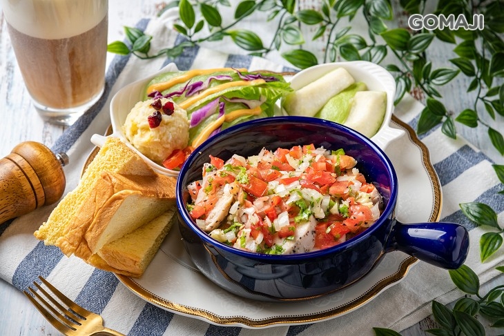 嚴選鮮嫩多汁的雞胸肉,以低溫舒肥的烹調方式呈現,香軟柔嫩的肉質,與融入蕃茄、洋蔥、香菜的秘製莎莎醬相搭,繽紛可口的模樣、不油膩的清爽口感,都足以給予滿分好評!伴隨酥香厚片吐司、馬鈴薯蛋沙拉、新鮮水果一起享用,最豐盛豪華的早午餐盡在【四季森林】!