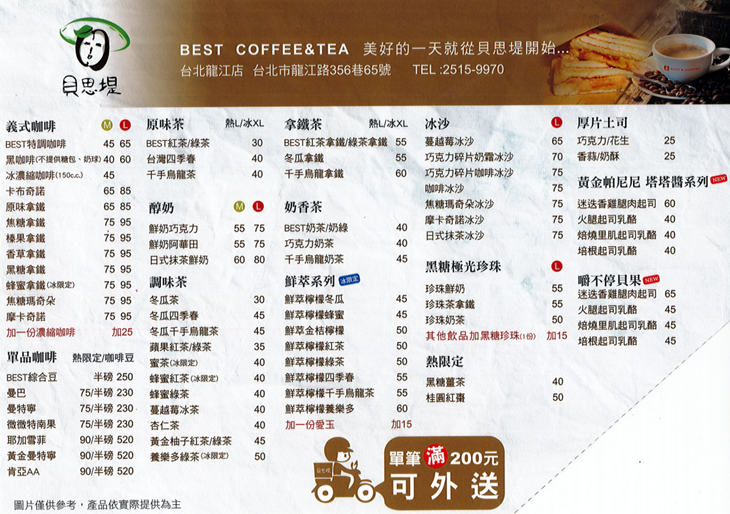 貝思堤咖啡(龍江店) MENU