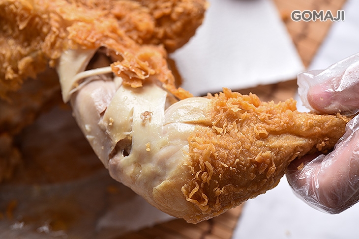精選雞隻優質部位肉,簡單調味裹粉下鍋油炸至金黃,酥脆的外皮,有著鮮嫩多汁的肉質,大口咬下,香氣與美味湯汁流瀉而出,迷人可口,讓人吃過後都念念不忘的吮指美味,必嚐無疑。