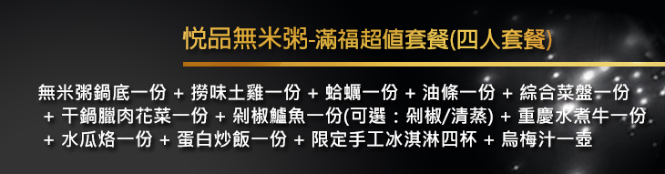➤ 悅品無米粥:滿福超值套餐(四人套餐)