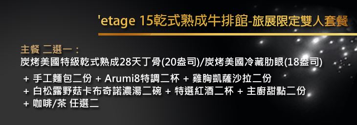 ➤ 'etage 15乾式熟成牛排館:旅展限定雙人套餐