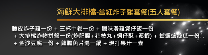 ➤ 海鮮大排檔:當紅炸子雞套餐(五人套餐)