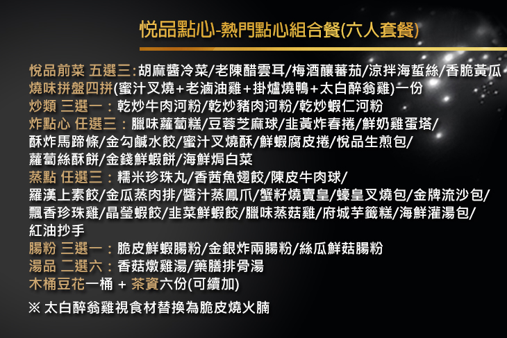 ➤ 悅品點心:熱門點心組合餐(六人套餐)