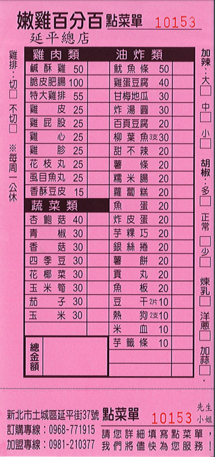無炸不歡的麻吉,有口福啦!GOMAJI為您精選直擊來自土城在地人,吃過都爭相推薦的人氣料理 -【詠晴嫩雞百分百鹹酥雞】!營業時間一到,招牌燈光亮起,只見老闆以不慌不忙、專注的姿態,在料理台前準備著一樣樣食材。針對食材的新鮮度與品質皆非常講究的老闆,烹調細節細心、不馬虎!料理食用油的選用到最後高速脫油機的相輔相成等,都是來自老闆的用心,即便賣的是炸物,也希望顧客吃得健康又安心 ~ 期盼透過簡單的炸物料理,讓顧客也能享有不一樣的美味奇蹟。