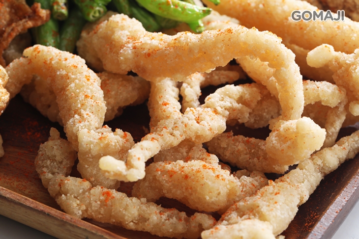 嚴選深海魷魚,以不規則、彎曲迷人的姿態,入鍋高溫油炸,口感彈牙有嚼勁,細細品味還能感受到魷魚來自海底的鮮味與肉香氣,單吃或是簡單調味品嚐,美味依舊,風味更佳。
