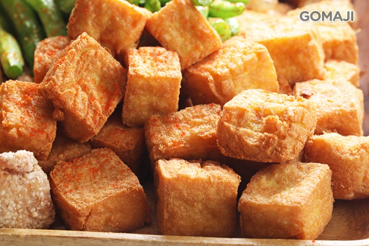 塊塊外酥內嫩的炸豆腐,金黃閃閃、噴香上桌!取塊入口品嚐,天然豆香在嘴裡瞬間爆發,軟嫩滑口,好誘人啊 ~ 簡單食材,透過老闆如魔術家般的神秘手藝,讓炸物美味品嚐起來也能不同凡響啊。