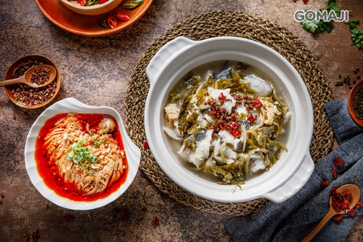 酸菜鱸魚是四川常見的一道家常湯品,尋麻記選用店內新鮮活撈的黑鱸魚,使用老罈酸菜與每日現熬大骨湯汁細細燉煮入味,夾一片黑鱸魚品嚐,極為鮮嫩的魚肉,鮮甜中帶著酸菜獨到的韻味,爽口又富滿醍醐味,少了麻辣調味,仍然能品味到川菜的奧妙,是一品值得您細細品嚐的珍饌佳餚!