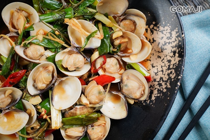 嚴選新鮮蛤蠣,入鍋加入薑絲、辣椒、九層塔等食材大火調味拌炒,蛤蠣在烹飪過程中,不斷釋放肥美肉汁精華,與風味醬汁合而為一,入口鹹香又涮嘴 ~ 這鮮香迷人的滋味,讓人一顆接著一顆欲罷不能 ~