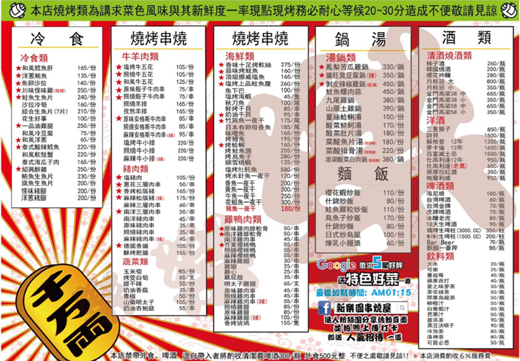 新樂園串燒屋 MENU (點圖可放大)