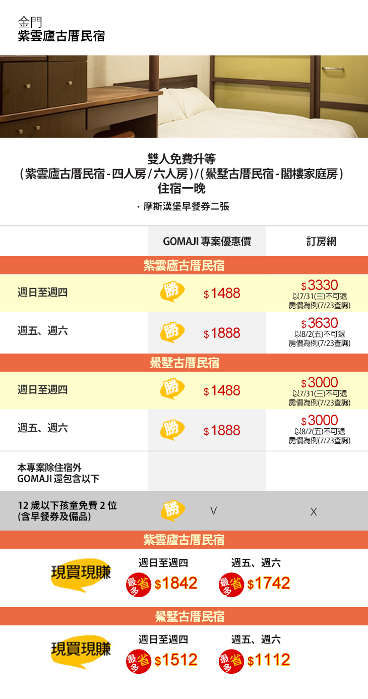 【金門-紫雲廬古厝民宿/鱟墅古厝民宿】感謝麻吉們熱烈搶購,已全數賣光光。