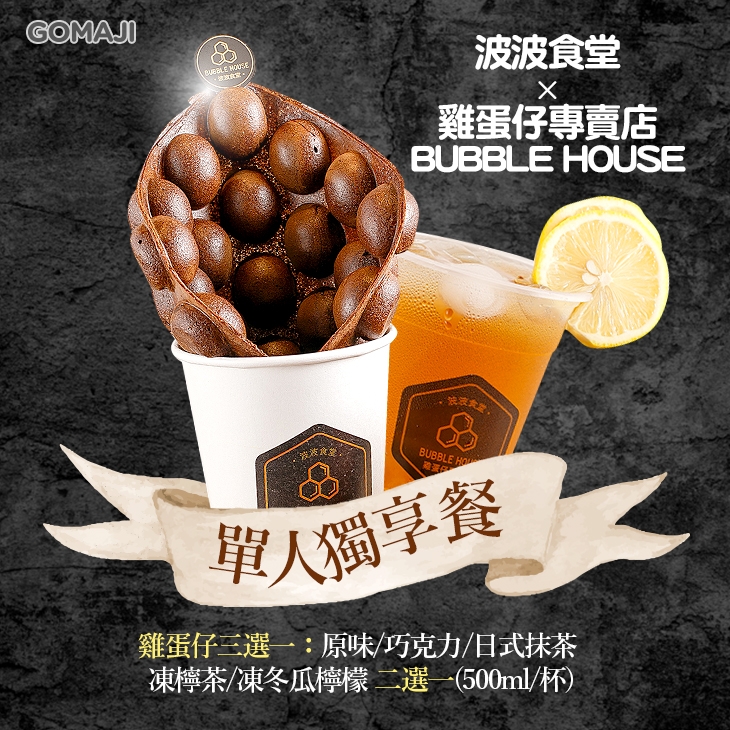 在美食林立的中原夜市,又多了一項甜點新選擇囉!專營港式經典小吃的【波波食堂X雞蛋仔專賣店(中壢中原店)】,提供各式風味現點現做的雞蛋仔,甜的鹹的應有盡有,搭配道地的港式飲品更是一大享受。黑白色調對比鮮明的工業風裝潢,馬上吸引眾人目光,快跟著GOMAJI腳步一同享用經典的雞蛋仔套餐吧!