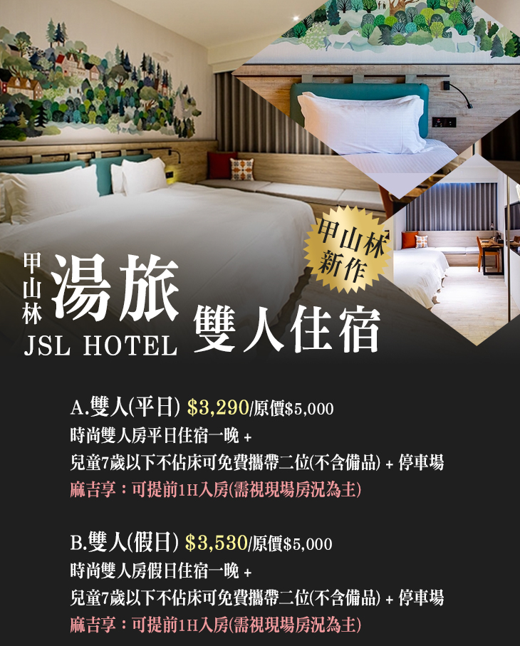 完善齊全的設備、熱情周到的服務及幽靜沉穩的空間,給您最高級的住宿體驗 ~ 辛苦了這麼久,不如就藉由這難得的機會,與家人、好友、伴侶相約,來到【甲山林湯旅】共度難忘又美麗的住宿時光。