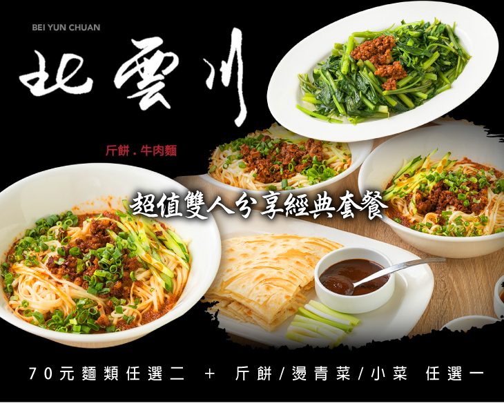 〈70元麵類任選二 + 斤餅/燙青菜/小菜 任選一〉