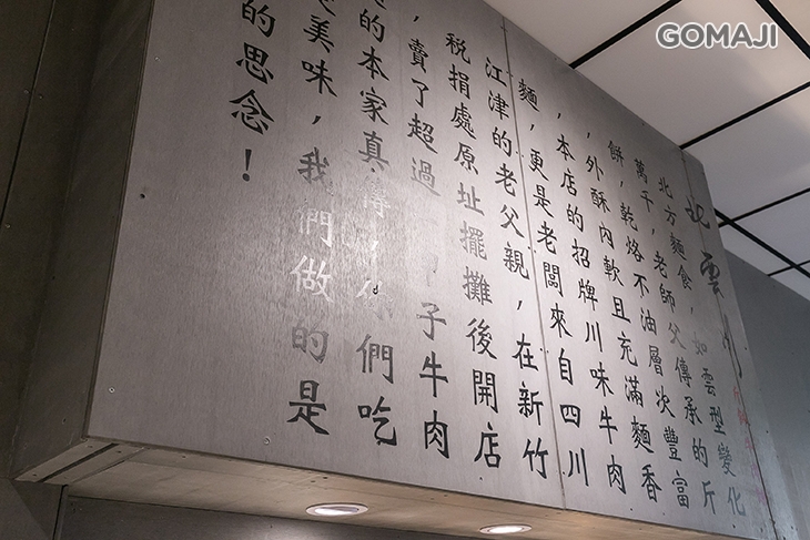 北方麵食,如雲型變化萬千,老師父傳承的斤餅,乾烙不油層次豐富,外酥內軟且充滿麵香,本店的招牌川味牛肉麵,更是老闆來自四川江津的老兵父親,在新竹稅捐處原址擺攤車後開店,賣了超過一甲子牛肉麵的本家傳承,所有湯頭皆用大骨,新鮮蔬果及家傳漢方熬製而成,「自己不吃,也絕不給客人吃!」這是我們的堅持。