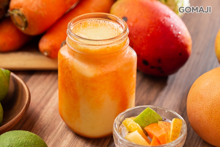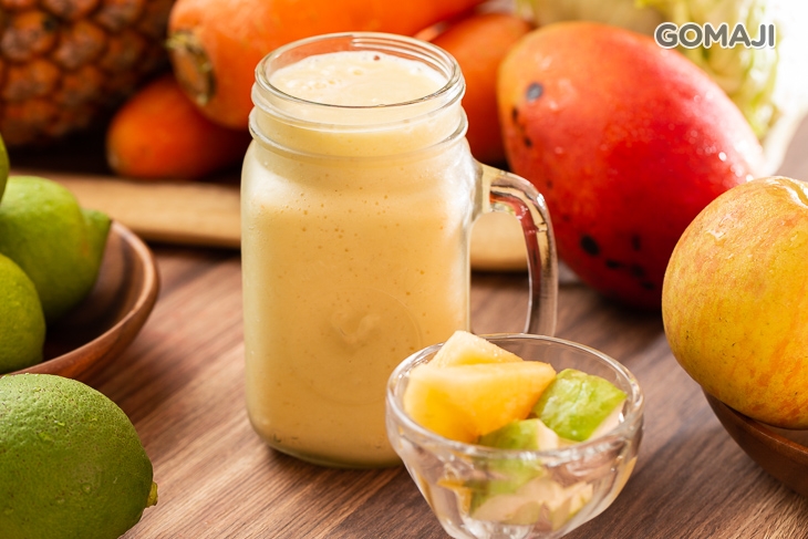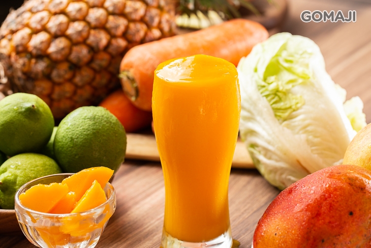 天然、不加糖!將芭樂與鳳梨,加點碎冰打成汁,淡淡鵝黃色澤,散發芭樂與鳳梨果肉清香,入口細嚐,還能不時咀嚼到芭樂籽的顆粒與鳳梨的果肉纖維,營養又美味,值得您我用心品味。