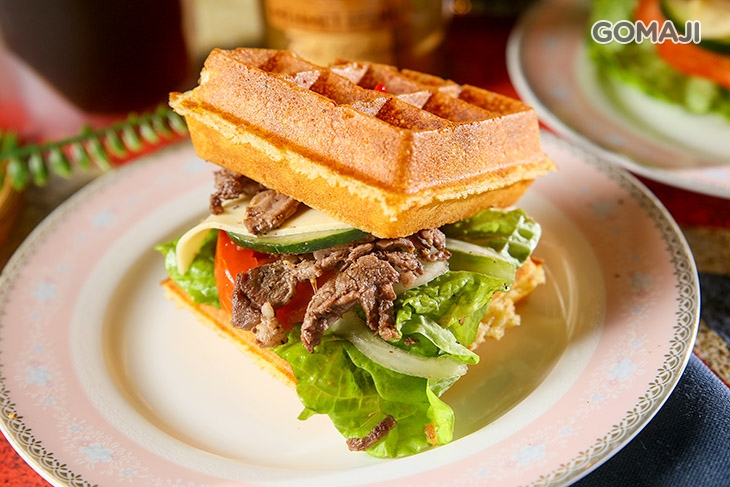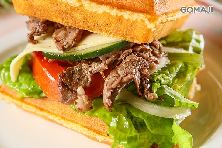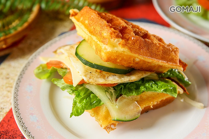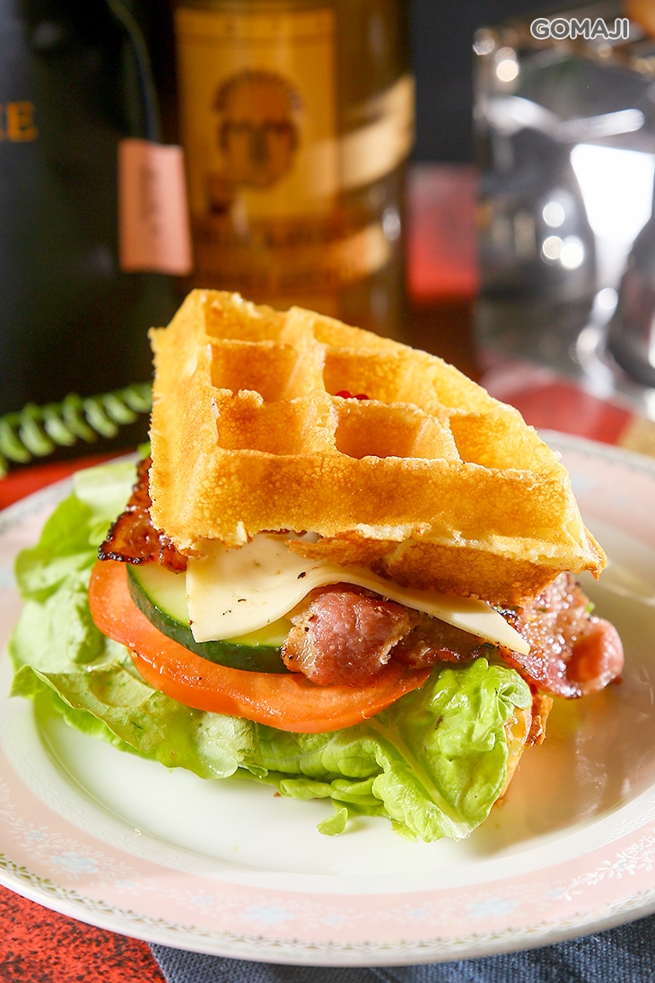 嚴選各式爽脆生菜,夾入荷包蛋與起司片,一口咬下豐富感十足,尤其那烤得外酥脆內鬆軟的鬆餅更是讓人為之瘋狂,濃郁的香氣縈繞於口中久久無法散去,清爽又有飽足感,超級好吃!
