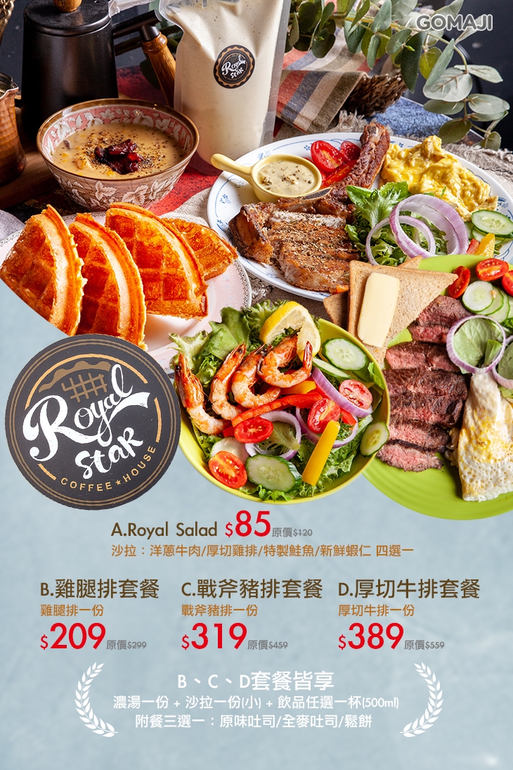 每天忙碌的上班生活枯燥乏味,總是需要來一點美食療癒身心靈。位於八德路二段巷弄內的【皇星咖啡屋】,專營精緻美味的鬆餅三明治及現煮手沖咖啡,無論是早餐、午餐或是下午茶,都能享用到香、醇、濃的咖啡與現烤鬆餅的美妙滋味,暗色系與木質跳色的質感裝潢,給您宛如皇室般的尊榮及享受。快跟著GOMAJI腳步,一同來品嚐風味非凡的手沖咖啡吧!