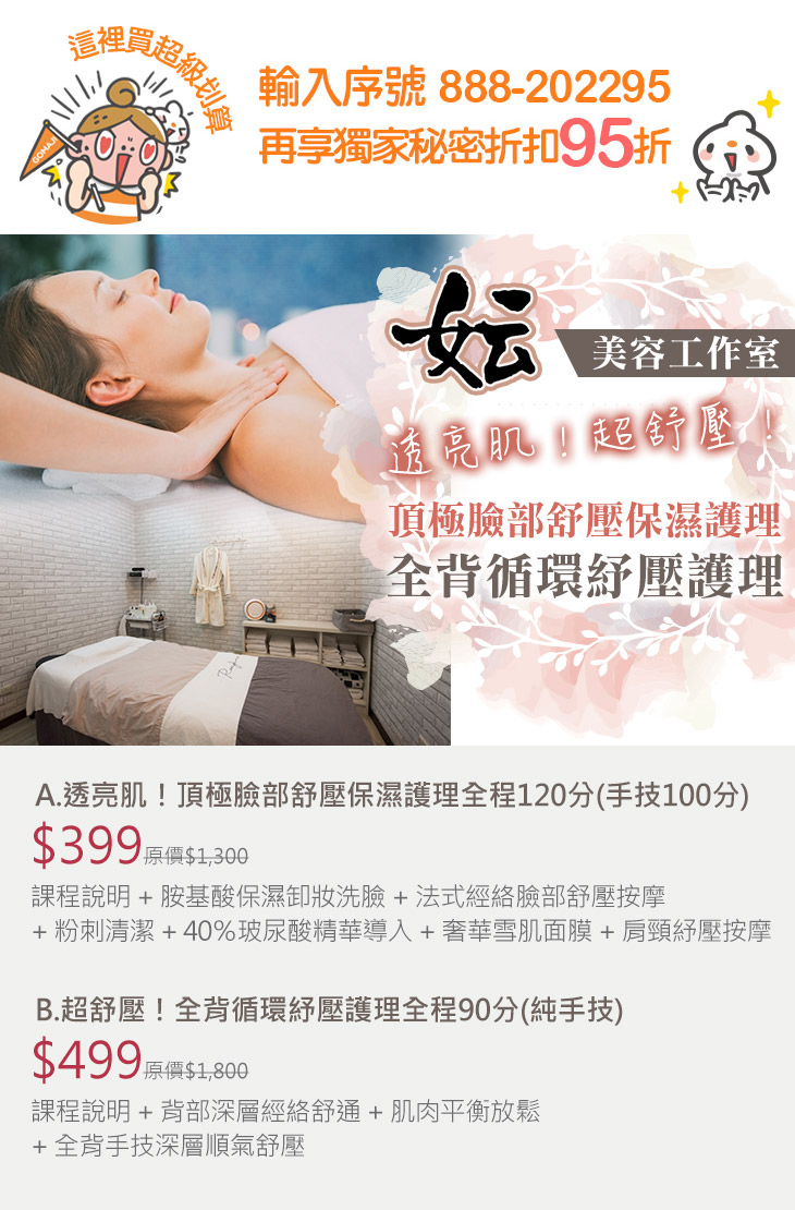 A.透亮肌!頂極臉部舒壓保濕護理全程120分(手技100分)