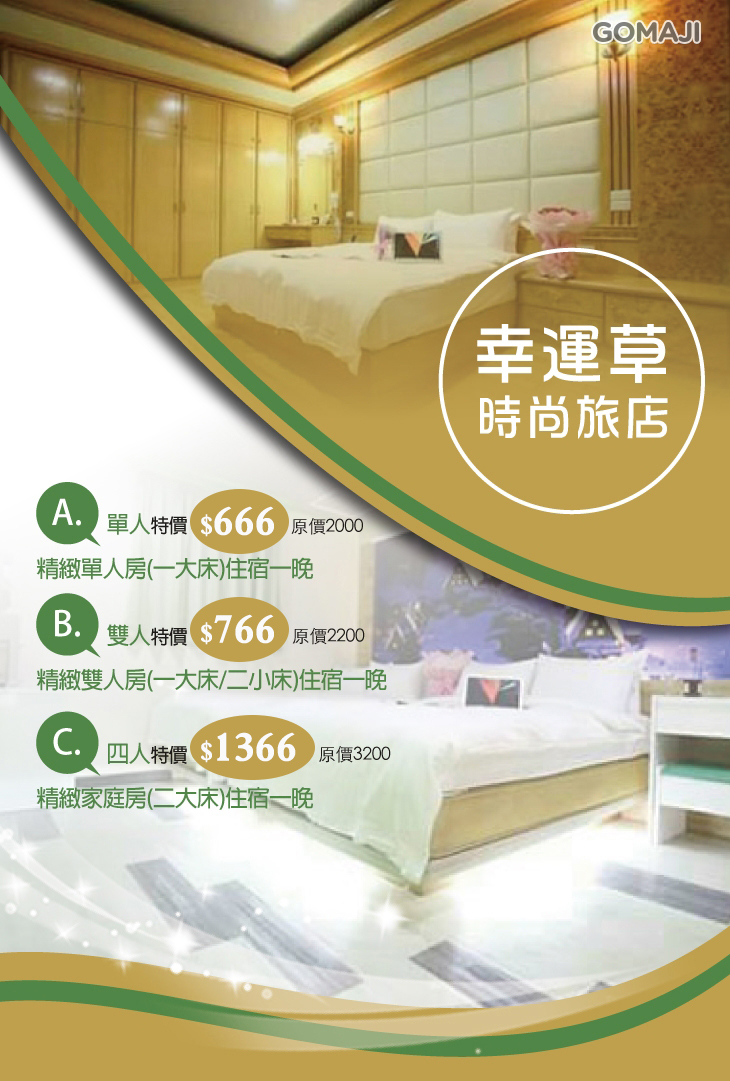 【桃園中壢-幸運草時尚旅店】感謝麻吉們熱烈搶購,已全數賣光光。