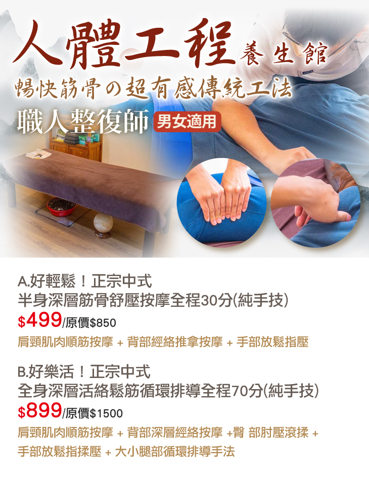 A.好輕鬆!正宗中式半身深層筋骨舒壓按摩全程30分(純手技)