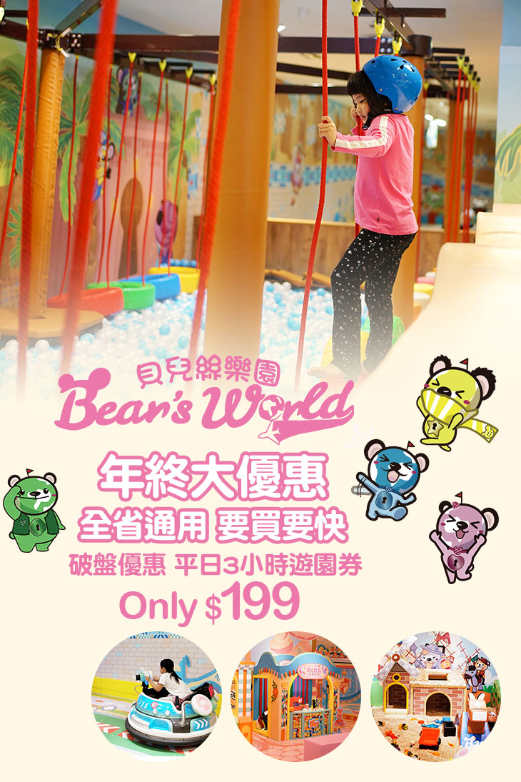 ★ 孩子最愛的天堂樂園-Bear's World 貝兒絲樂園,此次特別推出破盤優惠!超值遊園券,全省都通用、一券可大力暢玩3小時,是爸爸媽媽帶孩子出遊的最佳選擇!