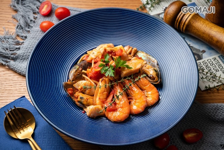 鹹香夠味的西西里海鮮義大利麵,吸上一口滑順麵條馬上攻陷味蕾,獨特口感搭配鮮美蛤蜊、紅蝦令人垂涎,超鮮海味帶出清甜精華,值得細細品嚐。