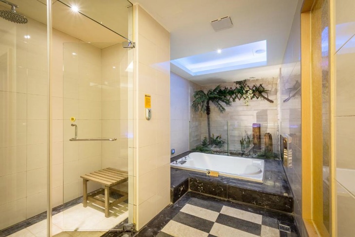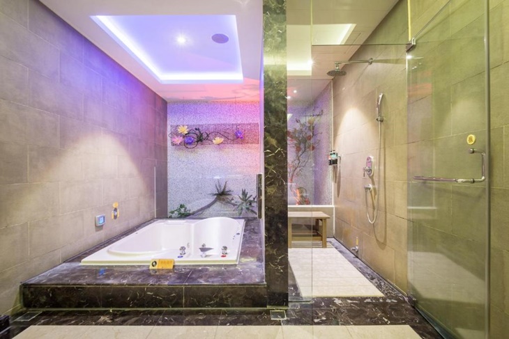 ▼超大的按摩浴缸,讓愛侶可以依偎共享甜蜜鴛鴦浴,隨著波波水流釋放疲勞,兩人也更親密。