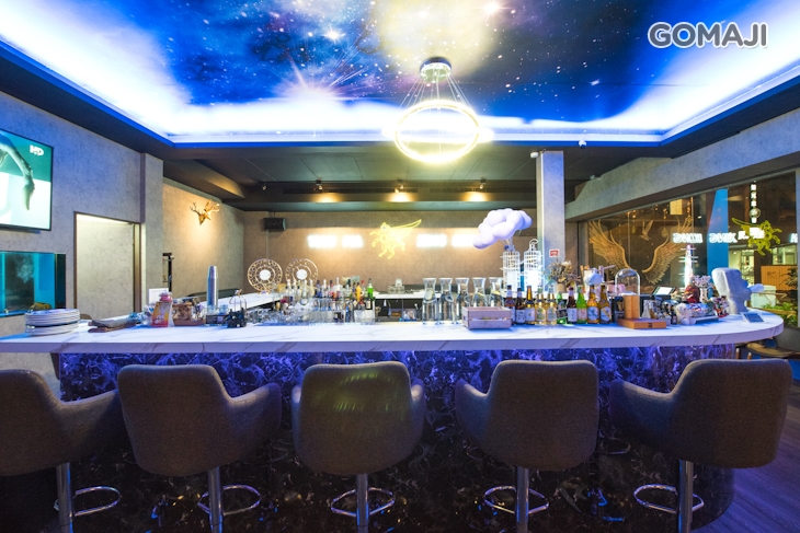 店如其名,【天馬星空餐酒館Tian Ma Xing Kong】以星空作為店內的主題裝潢,絢麗迷幻的空間,讓您彷彿走入了宇宙星空的幻想之中,在這裡,好似所有的夢想都會成真、甚麼樣的創造都會實現。讓親切的服務員為您端上一道充滿主廚創意的餐點,將世俗中俗氣的煩惱都拋諸腦後,盡情地享受在夢幻美食及夢幻的氛圍。