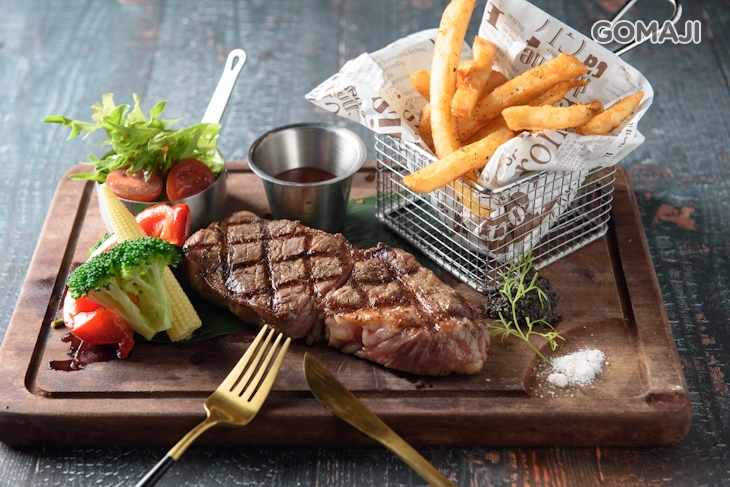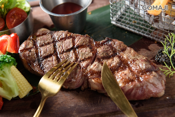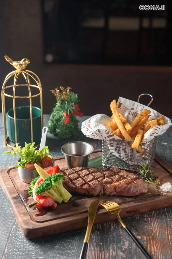 特別以濕式熟成烹調而成的肋眼牛排,厚實的牛肉被煎上焦香誘人的網狀格紋,用刀叉切取一片,只見那煎成褐色的表層內,是保有艷紅,多汁鮮嫩的肉質,入口咀嚼,極為細緻的口感幾乎入口即化,豐盈甘醇的牛香精華次次綻放在齒唇之間,幸福至極的美味讓人第一次體會到什麼叫「好吃得臉頰要融化」。