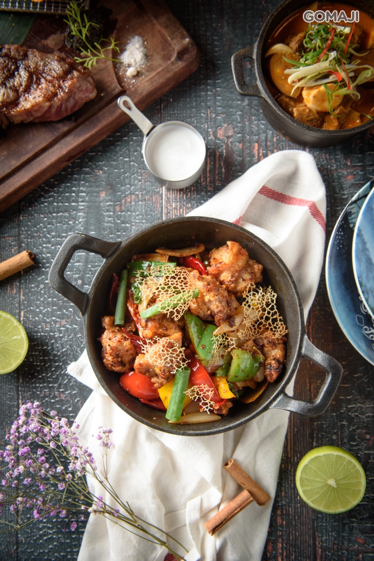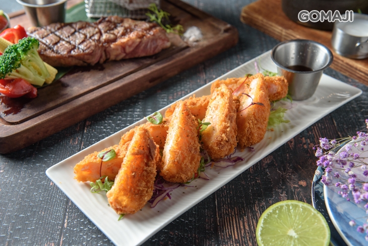 使用滿滿鮮蝦紮實製成的金錢蝦餅,薄酥脆口的金黃外衣中,是彈嫩綿密、蝦香滿溢的甘美滋味,沾上主廚特調的清爽醬汁一同品味,香酥味濃的味覺享受讓人忍不住一口接著一口!