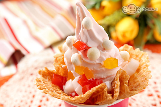 女孩心目中的夢幻逸品,絕對眼前這杯夢幻草莓屋!粉紫色優格冰淇淋上,點綴繽紛色彩玩意兒,圓形棉花糖、方形吉利果交織其中,卡哇伊的模樣滿足麻吉視覺享受!