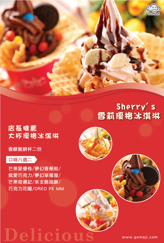 老闆Christine知道媽媽喜歡吃優格冰淇淋,特地將這樣的口味帶回台灣,並以媽媽的名字Sherry為店名,【Sherry's 雪莉優格冰淇淋】就這樣成立在美麗華百樂園B1美食街旁!在這個秋老虎持續發威的天氣,現在只要145元就能品嚐店長推薦大杯優格冰淇淋!