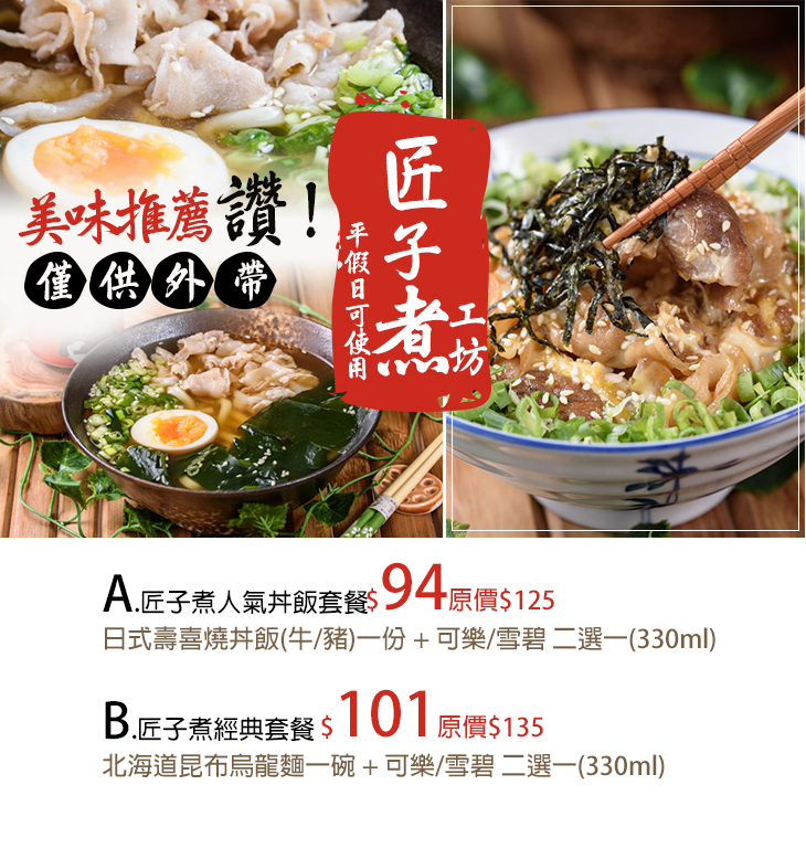※ 本優惠僅供外帶,實際包裝方式以現場為主。