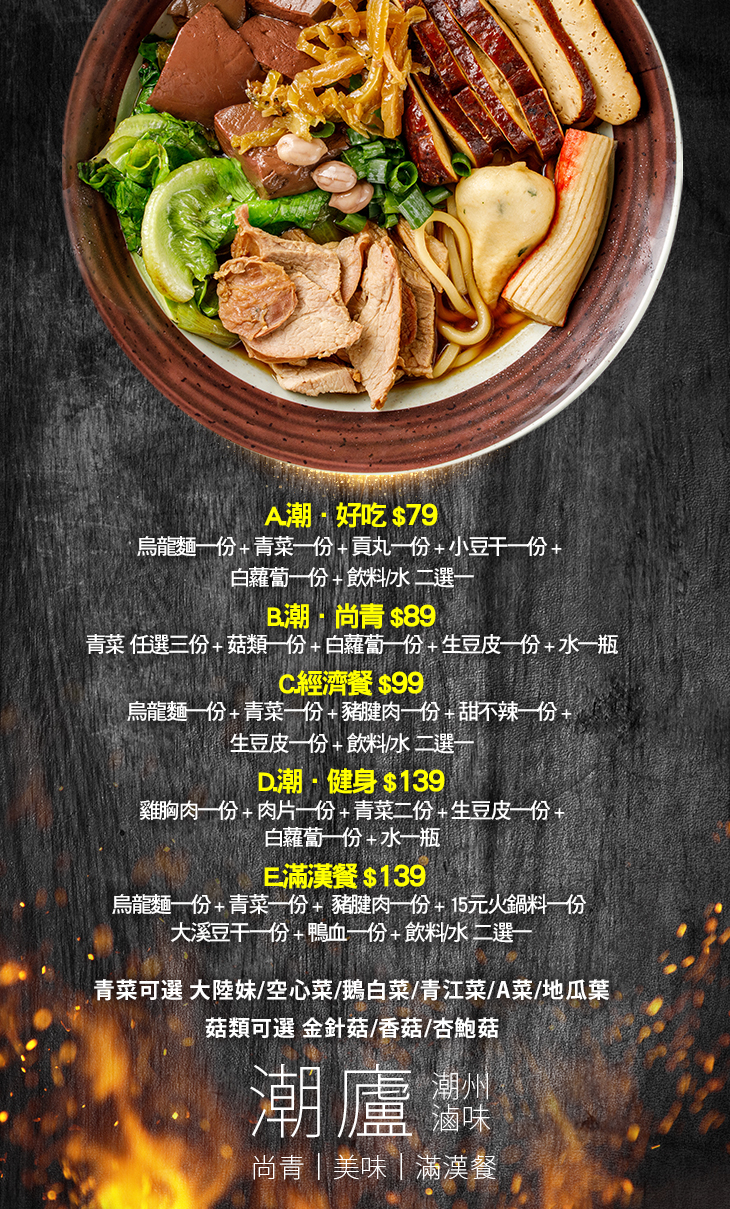 專賣潮州滷味的「潮廬」,嚴選上等食材,遵循古法、用心滷製,以數十種中藥材提煉滷汁,清爽、不死鹹的好味道,搭配各式食材都很合拍!現代人追求的健康、味美、不加味精,店家皆幫您層層把關,給您安心滿足的一餐;「潮廬」特別以朝天椒精華煉製的紅油辣椒,色香味俱全、非常夠味,內用即可依照個人喜好添加,是許多顧客吃過必回訪的特色之一。午餐、晚餐、宵夜還沒決定好去處嗎?推薦您來「潮廬」,在時尚舒適的用餐環境中,享受潮州滷味的魅力吧!