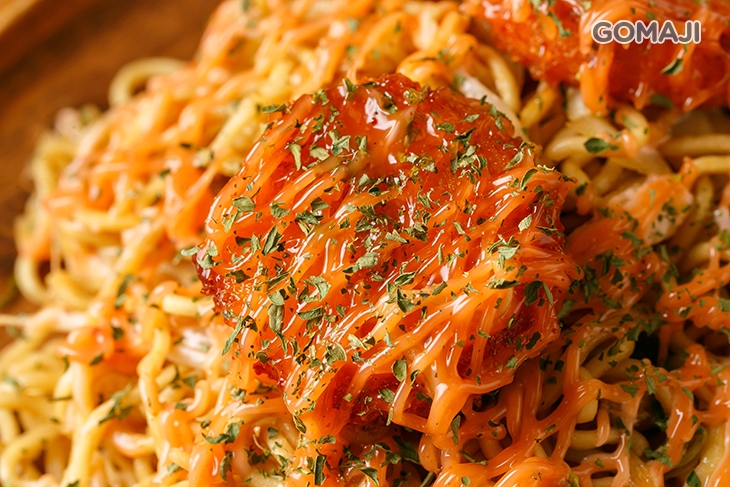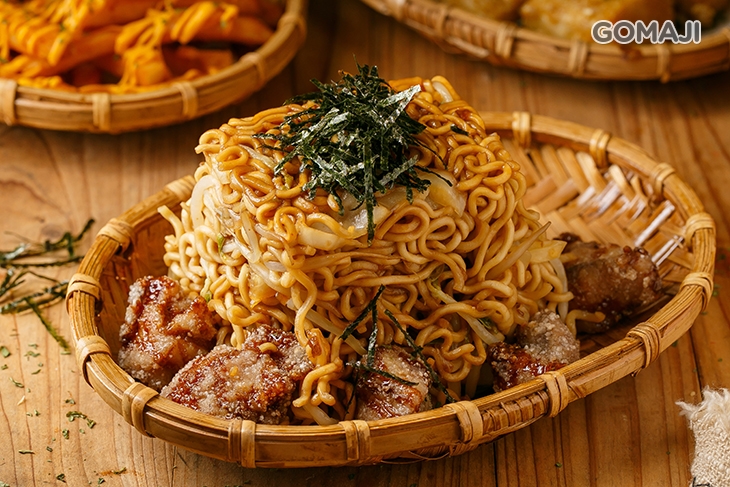 採用了日式炒麵的手法,運用鐵板熱炒彈牙勁道的泡麵條,能夠均勻受熱的鐵板,將每一根麵條都炒出焦香氣息,同時放入大量的新鮮蔬菜一同拌炒,利用鐵板熱度將蔬菜的甘甜完全逼出,再放上香酥多汁的香脆雞,香氣撲鼻的酥炸香脆雞秘製炒泡麵就可以上桌囉!份量超大的炒泡麵,每一口都嚐得到豐盛的配菜,多元的口感怎麼吃都不膩。