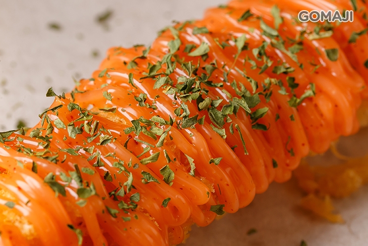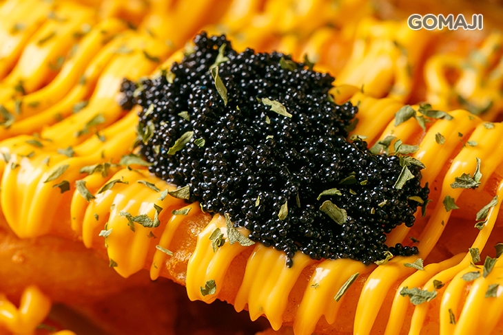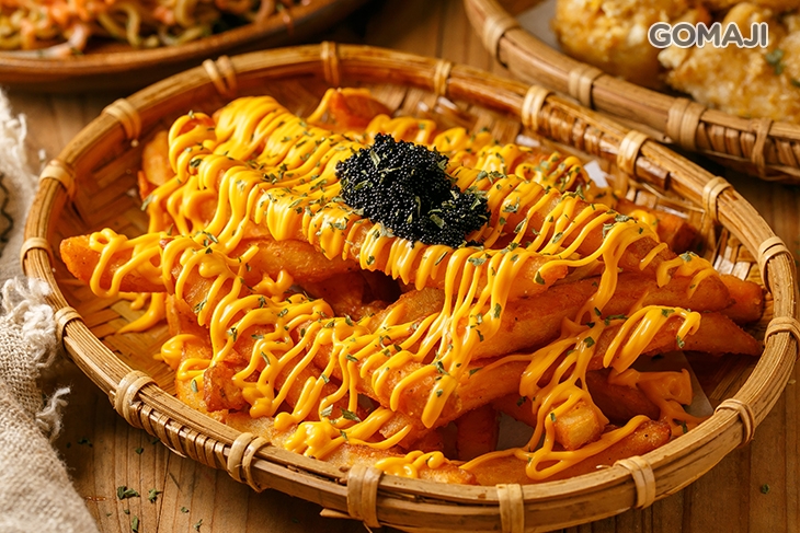 又香又酥的脆薯淋上滿滿的金黃起司醬,再點綴上顆顆飽滿的魚卵,視覺效果絕佳,光用看的就忍不住垂涎三尺,細細品嚐,香鹹濃厚的好滋味令人一吃就愛上,忍不住一根接著一根!
