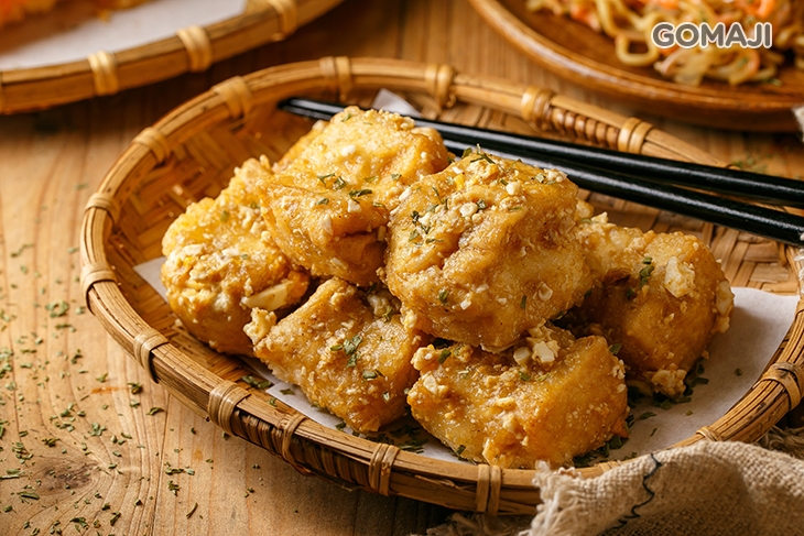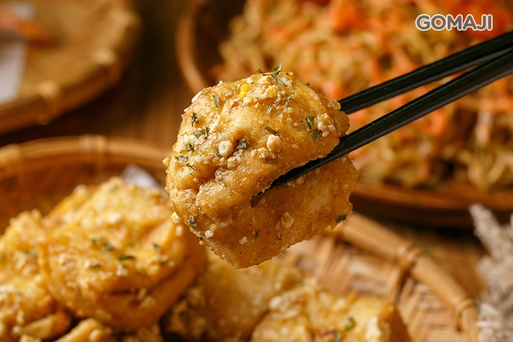 不同於坊間常見的金莎豆腐,店家選擇了口感較為紮實板豆腐來取代一般常用的雞蛋豆腐,經過酥炸的板豆腐變得外酥內鬆軟,還嚐得到黃豆淡淡的香氣,均勻裹上鹹蛋黃,香鹹馥郁的金莎板豆腐一端上桌,讓人忍不住食指大動。